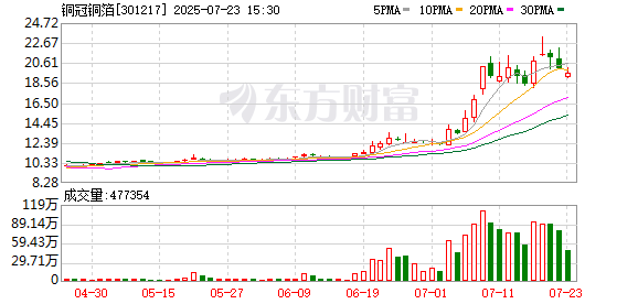 铜冠铜箔(SZ 301217,收盘价:19.53元)7月23日晚间发布公告称,公司限售股份6亿股将于2025年7月28日解禁并上市流通,占公司总股本比例为72.38%。