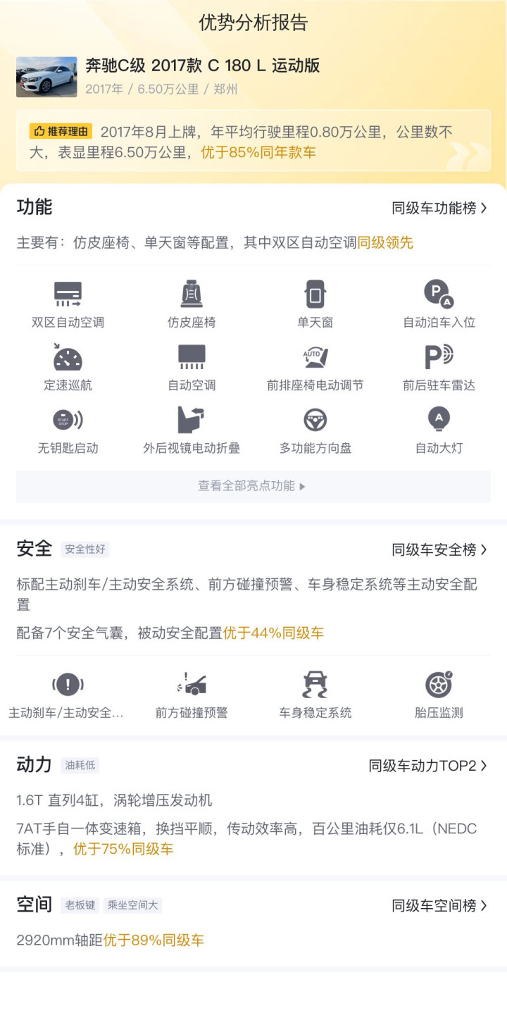 如果您正在寻找一辆价格实惠、品质可靠的二手车,那么这辆奔驰C级 2017款 C 180 L 运动版或许是一个不错的选择。当然,在购买之前,建议您还是要亲自到店查看实车,并向销售人员了解更详细的车况信息。只有全面了解了车辆的情况,才能做出更加明智的购买决策。